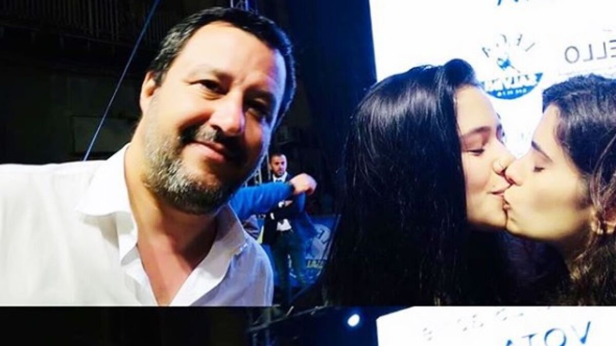 La fotografía de dos jóvenes dándose un beso junto a Matteo Salvini se ha hecho viral en las redes sociales, donde los internautas han apoyado a las protagonistas de la fotografía.