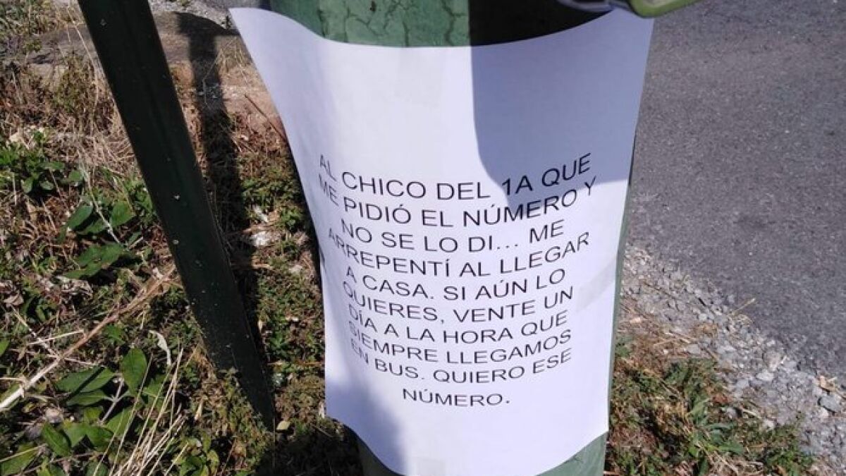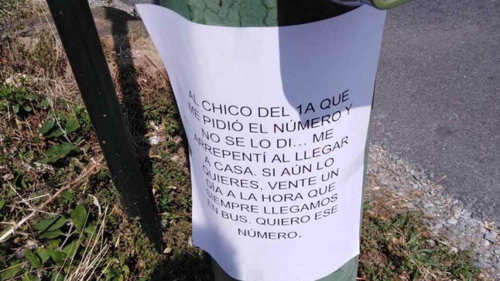 Los flechazos fulminantes en el transporte público son un clásico. Lo que no es tan clásico es que sean correspondidos. Algo así ha pasado en la línea A1 de autobuses en A Coruña y la cuenta de Twitter de tranvías de la ciudad gallega ha hecho partícipes a todos sus seguidores. Una nota de la protagonista femenina de esta historia colgada en la parada de autobús ha corrido como la pólvora en las redes sociales. En el texto, ella mostraba su arrepentimiento por no haberle dado su número. Además, citaba al interesado a una hora y en un lugar determinado. “Al chico del 1A que me pidió el número y no se lo di... Me arrepentí al llegar a casa. Si aún lo quieres, vente un día a la hora que siempre llegamos en bus. Quiero ese número", reza el texto. Esta historia de amor frustrada ha conmovido a muchos usuarios. Todos están deseando conocer el desenlace de esta historia de amor frustrada.