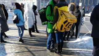 La imagen donde aparece una pareja rusa besándose ha llegado a convertirlos en 'Romeo y Julieta modernos' en as redes sociales al trabajar cada uno de ellos en compañías diferentes de entrega de comida rápida.