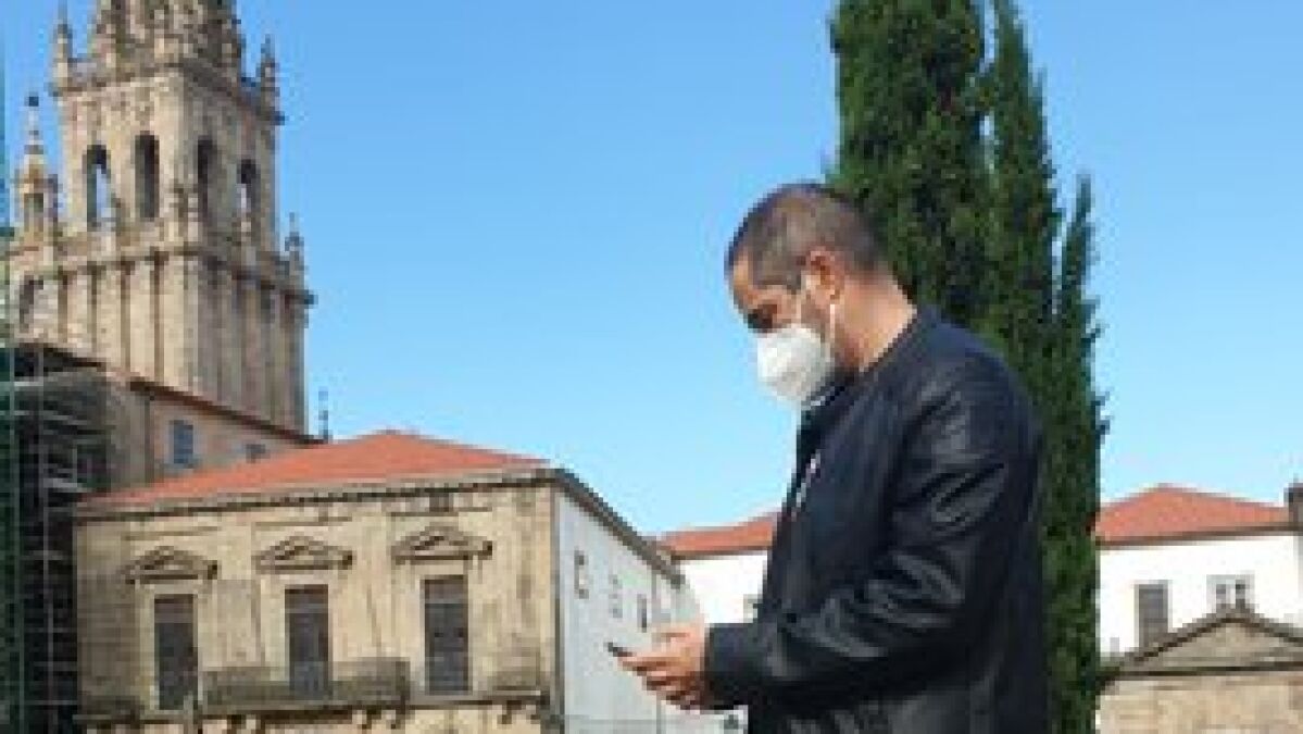 Con una de las torres de la Catedral de Santiago de fondo y una caja rota de Amazon como curriculum este argentino de nacimiento se ha hecho viral en Twitter después de compartir su experiencia laboral en la red social.