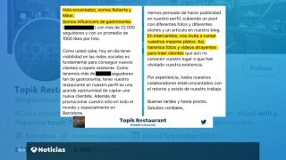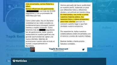 Un hostelero de Barcelona recibió un desafortunado mensaje. Dos 'influencers' se ofrecían para comer gratis y a cambio hacerle publicidad en su blog. Le pedían que les invitara a comer sus mejores platos, y que en compensación harán fotos y video para atraer clientela.