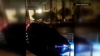 Como se puede ver en el vídeo superior, a su paso destroza algunos peldaños hasta llegar a una carretera para seguir su camino, esta vez sí, por el lugar adecuado para ello.