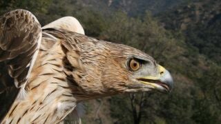 Una niña intenta escapar del ataque de un águila ante las risas de su madre