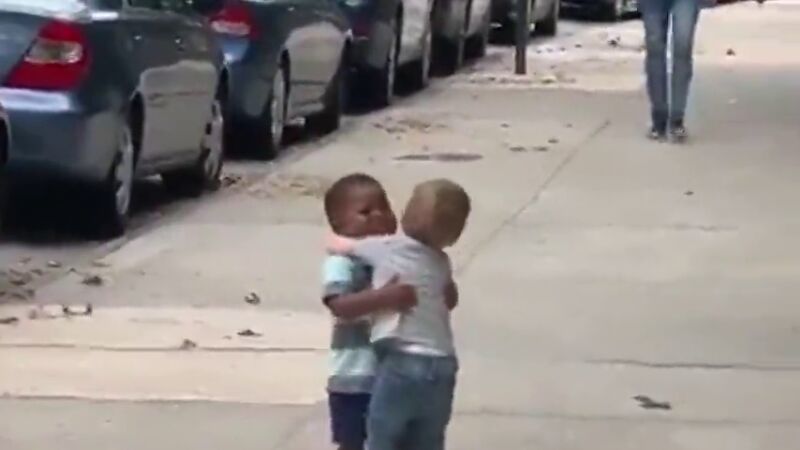 En las imágenes se puede apreciar cómo los dos pequeños amigos se lanzan a correr con los brazos abiertos para fundirse en un tierno abrazo. Como si de meses o años se tratase, el reencuentro conmovió a los padres de ambos, los cuales aseguran que solamente llevaban sin verse dos días.