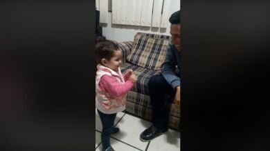 La conversación entre la pequeña y su padre ha emocionado a los usuarios de las redes sociales. Las imágenes muestran a la niña intentando comunicarse con él haciéndole señas y moviendo repetidamente las manos.