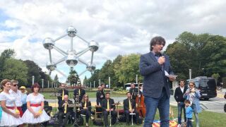 El expresidente de la Generalitat Carles Puigdemont participó en un acto organizado por la Asamblea Nacional Catalana con motivo de la Diada frente al 'Atomium' de Bruselas.