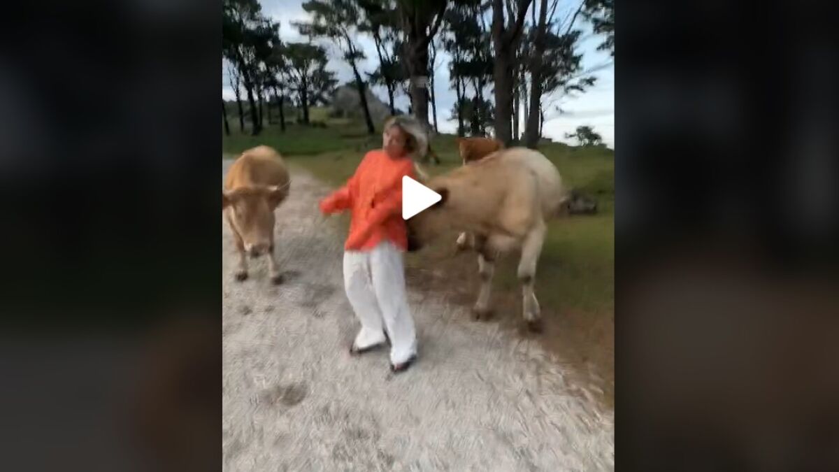 "Nunca he odiado tanto unos cuernos". Es el comentario de la tiktoker Noe Martos a pie de un vídeo que se ha convertido, en cuestión de horas, en viral. Junto a esas letras se la ve a ella, colocándose entre una vaca y su ternero, para capturar el momento y difundirlo, pero algo sale mal. La chica es embestida por la madre, que protege a su hija de la presencia de una extraña que se acerca demasiado. La usuaria corre y sale del plano mientras quien la graba se lamenta de lo ocurrido y grita su nombre.