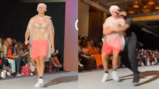 Todo parecía que transcurría con normalidad. El público no notó nada extraño. Pudo desfilar por la pasarela durante unos segundos antes de que el guarda de seguridad corriera hacia él y lo sacara del recinto ante la sorpresa de todos los presentes en el desfile de la firma para la temporada Primavera-Verano de 2024.