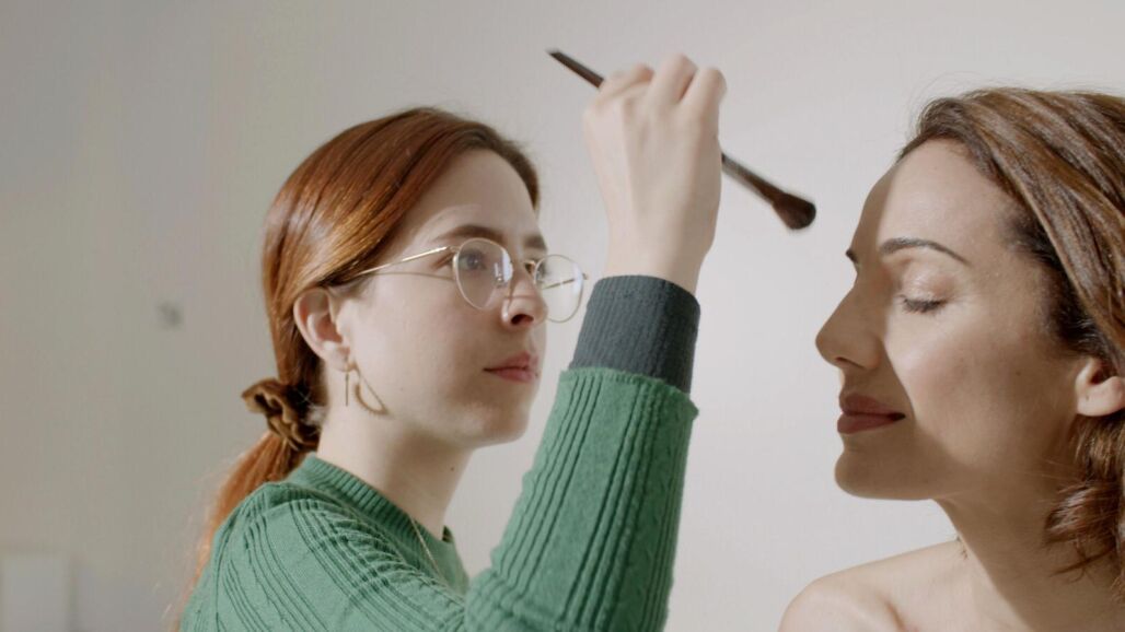 Por ejemplo, si la luz del plató para grabar un telediario es blanca, intensa y frontal, “tendremos que subir el tono de la piel utilizando una base de un tono más cálida e intensificando el rubor, así como remarcar pómulos y ojos”, apunta la maquilladora.