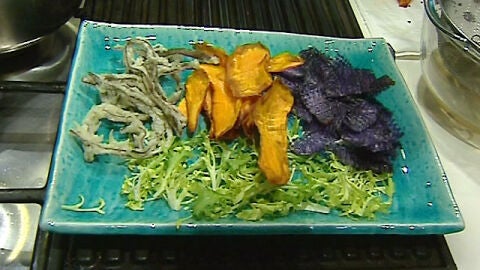 Esta semana os propongo una guarnición divertida y original para que acompañeis vuestros platos: unas chips que podemos cocinar con patata morada, boniato o algas espagueti de mar y que van muy bien con arroces o ensaladas. Estas algas, también llamadas wakame, son muy originales, y si además están preparadas en tempura, ofrecen una gran fuente de energía y de nutrientes. Te explico cómo prepararlas en este vídeo.