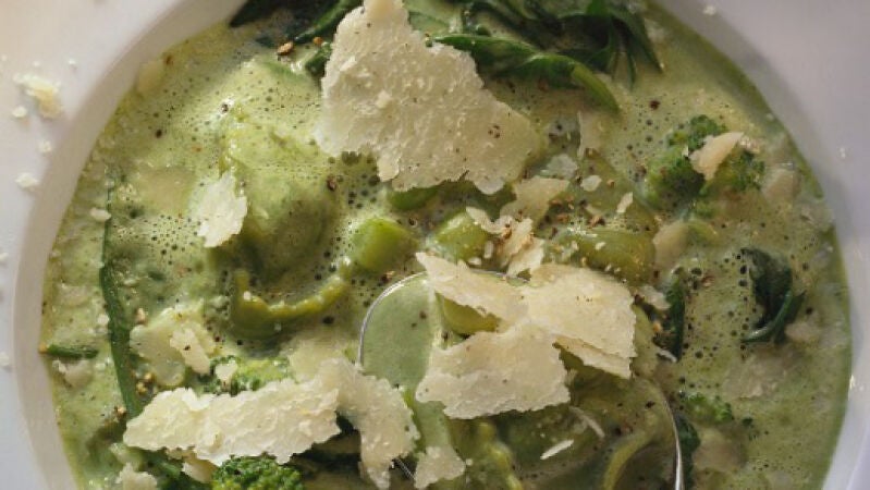 Crema de brócoli con crujiente de queso