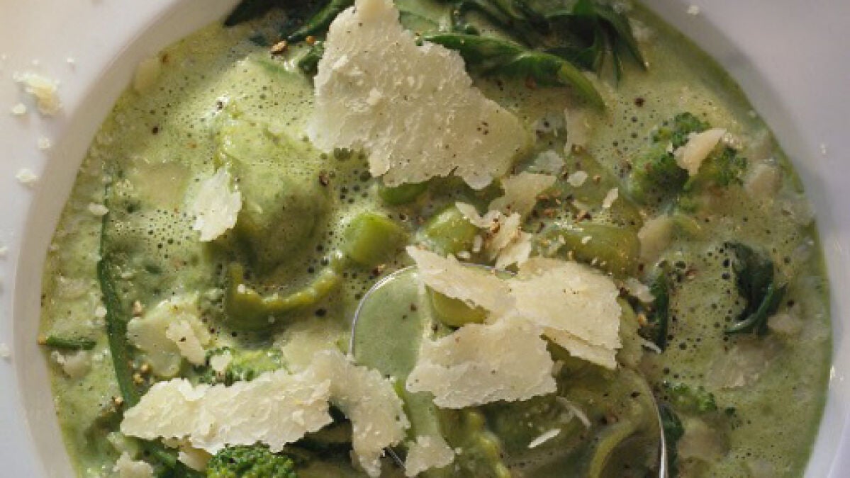 Receta de crema de brócoli con crujiente de queso