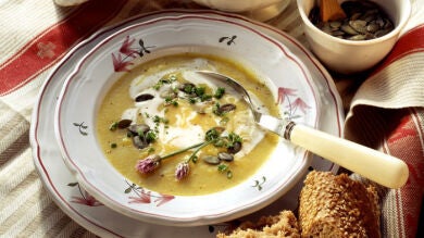 Además de los picatostes o los daditos de jamón o bacon para las cremas, una opción muy saludable para añadir un crujiente a una crema de verduras es utilizar diferentes tipos de semillas.