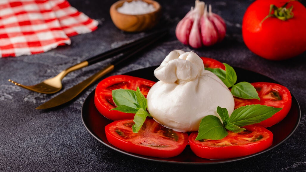 Cómo hacer la ensalada viral de tomate y burrata en casa