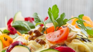 Al rico aliño grasiento. Todas esas salsas espesas, ya sean la rosa, la de cuatro quesos o la mostaza con miel, dotan de consistencia a tu bol de ensalada, pero también le añaden calorías por un tubo. Hay casos en los que uno de estos aliños puede llegar a tener más calorías que la ensalada en su conjunto, por lo que es mejor prescindir de ellos. Además, suelen incorporar azúcares, demasiada sal... Un desastre para tu línea, vamos.