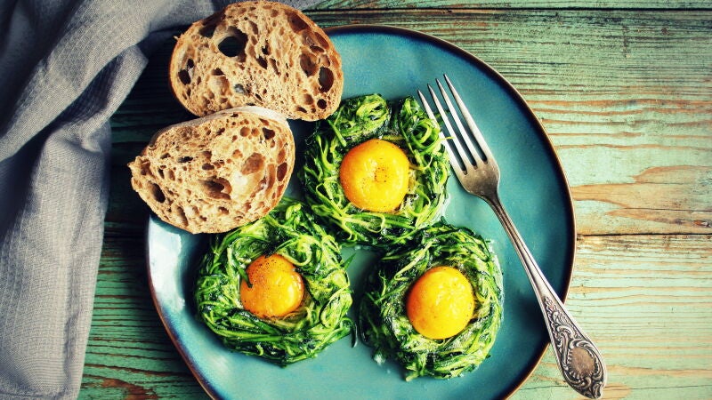 Nidos de espaguetis de calabacín con huevo