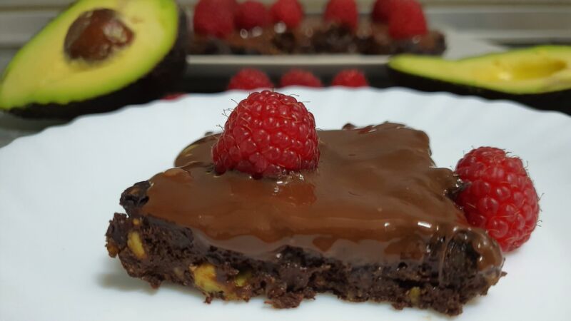 Postre saludable: Brownie de aguacate con dátiles y frambuesas