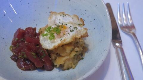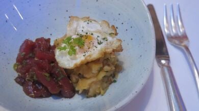 Solomillo y lomo de atún. Se trata de partes muy blandas, que suelen utilizarse para el tartar. González se aprovecha de sus connnotaciones cárnicas para introducirlo en un plato llamado Trilogía de atún con huevo de codorniz y patata panadera: una peculiar versión de los 'huevos rotos' en los que el jamón se cambia por el atún rojo.