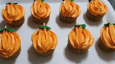 Si te han invitado a una fiesta de Halloween y tienes que llevar algo para picar, apuesta por la receta de cupcakes con forma de calabaza. Este alimento de otoño, que también es un símbolo de Halloween inspira estas magdalenas tan creativas.