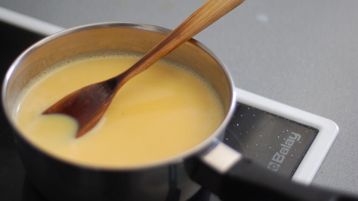 - Una vez bien disueltos todos los ingredientes, caliéntalos en una sartén, a fuego lento, sin dejar de remover con una cuchara de madera. Calienta hasta que la mezcla esté bien espesa, sin que llegue a hervir.