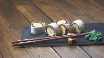 Puede ser un postre, un desayuno, una merienda o lo que te dé la gana: sushi de Nutella y banana. Un escándalo. Y muy pero que muy fácil de hacer.