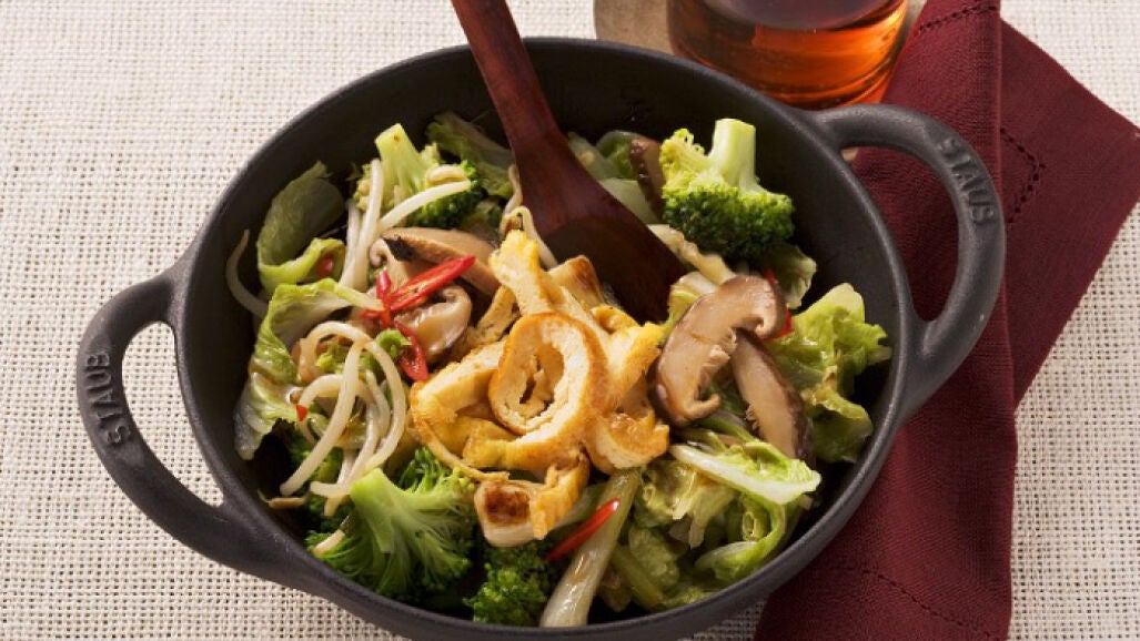 Si eres más de carne puedes decantarte por maridar trocitos de pollo y pasarlos por la sartén. Pero si sigues una dieta vegetariana o vegana puedes acompañar este salteado de verduras con arroz blanco. Cualquier opción está exquisita, ¡pruébala!
