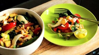 Diseña el plato perfecto. Cada comida debe consistir en un 45% de hidratos de carbono ricos en fibra, un 30% de grasas saludables y un 25% de proteínas magras, como el pollo o el pavo, pescados como el atún, tofu o claras de huevo. La proteína nos ayuda a mantener la masa muscular, los hidratos de carbono ricos en fibra a mantenernos saciados -como acababos de ver-, mientras que las grasas saludables ayudan a reducir el riesgo de enfermedades cardíacas.