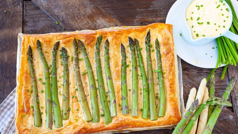 Si te has quedado sin ideas para tus cenas de fin de semana o para sorprender a tus invitados en una ocasión especial, prueba esta receta de hojaldre con espárragos trigueros, brie, jamón y frutos secos. ¡Te sorprenderá!