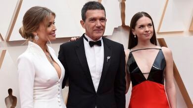 Antonio Banderas, con su hija y su novia en la alfombra roja de los Premios Oscar 2020