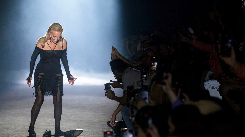 Carmen Lomana, como una auténtica diva, se ha subido a la pasarela de la 080 Barcelona Fashion para desfilar para Dominnico. Lo que nadie se esperaba es que se convirtiera en la gran protagonista por quitarse los tacones y terminar el desfile descalza.