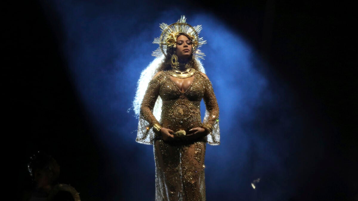 Beyoncé actúa embarazada como una diosa de la fertilidad en los Premios Grammy 2017