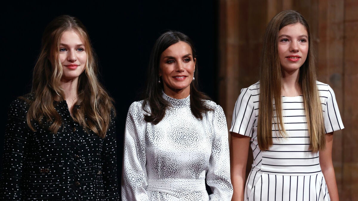 Este jueves la Familia Real asistía en el Auditorio Príncipe Felipe de Oviedo al concierto previo a la entrega de los premios. Un acto en el que fueron recibidos con vítores y aplausos por parte del pueblo asturiano y en el que la princesa Leonor, a la que no veíamos desde hace casi tres meses, acaparó todo el protagonismo en su esperada reaparición. Radiante con un elegante traje de pantalón en rosa fucsia, la heredera al trono conseguía eclipsar tanto a la reina Letizia, impresionante con un diseño de Teresa Helbig con el que presumió una vez más de espalda torneada, como a la infanta Sofía, ideal con un diseño satinado en color verde por encima de la rodilla.