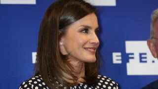 Durante un acto en Madrid ha lucido la blusa de lunares de Carolina Herrera y el pantalón tobillero con abotonaduras de Hugo Boss, solo que en esta ocasión lo ha combinado con un bolso navy de Loewe en vez del rosa que lució en aquella ocasión de Uterqüe.