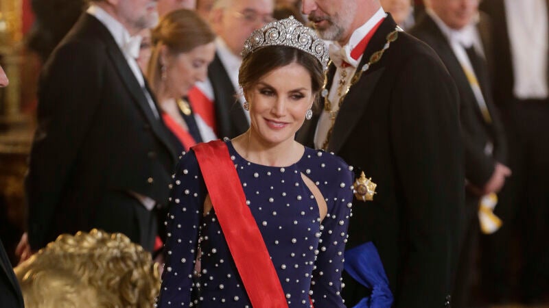 La reina Letizia llegó como una espectacular anfitriona al Palacio Real para la cena de gala en honor a Marcelo Rebelo de Sousa, el presidente portugués. Su modelito de Ana Locking, que anteriormente habíamos visto a la actriz Marta Nieto en los Premios Feroz, acaparó todas las miradas, junto con la tiara Cartier, una de las favoritas de Doña Sofía.