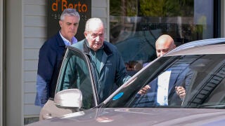 Juan Carlos I continúa su estancia en Galicia, donde ha vuelto a dejarse ver en Sanxenxo. El monarca ha salido de la casa de su gran amigo Pedro Campos para disfrutar de una comida en uno de sus restaurantes de referencia en la zona, una tradición durante sus visitas al norte.