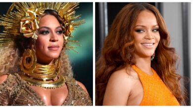 Rihanna envía falsos besos a Beyoncé durante los Premios Grammy 2017
