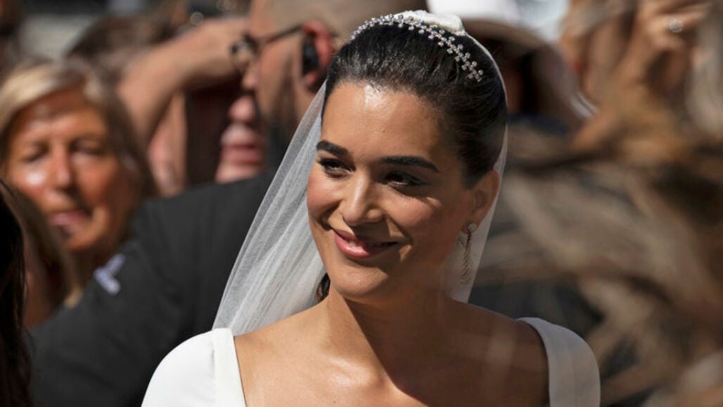 En cuanto a los complementos, la novia optó por zapatos a medida de Isabel Abdo, una pulsera convertida en diadema de la joyería Grassy y unos pendientes de estilo art déco, regalo de Cayetano.