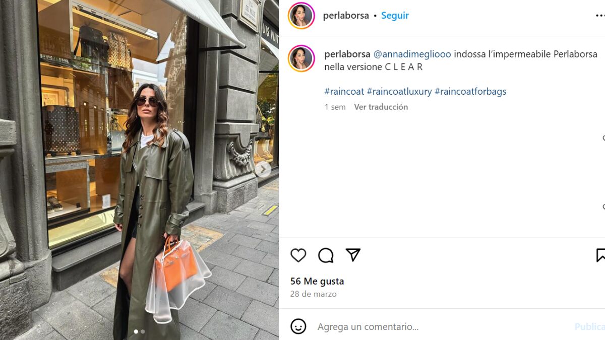 "Fue creado con la idea de proteger los bolsos de lujo de los agentes atmosféricos, como la lluvia y la nieve, que afectan la delicada piel con la que están elaborados, pero también como un accesorio para poner más de moda los outfits de verano: ¡para el bolso no es solo para la lluvia, también es un elegante escudo contra salpicaduras inesperadas junto a la piscina!", explica la creadora de los impermeables para bolsos en la página web.
