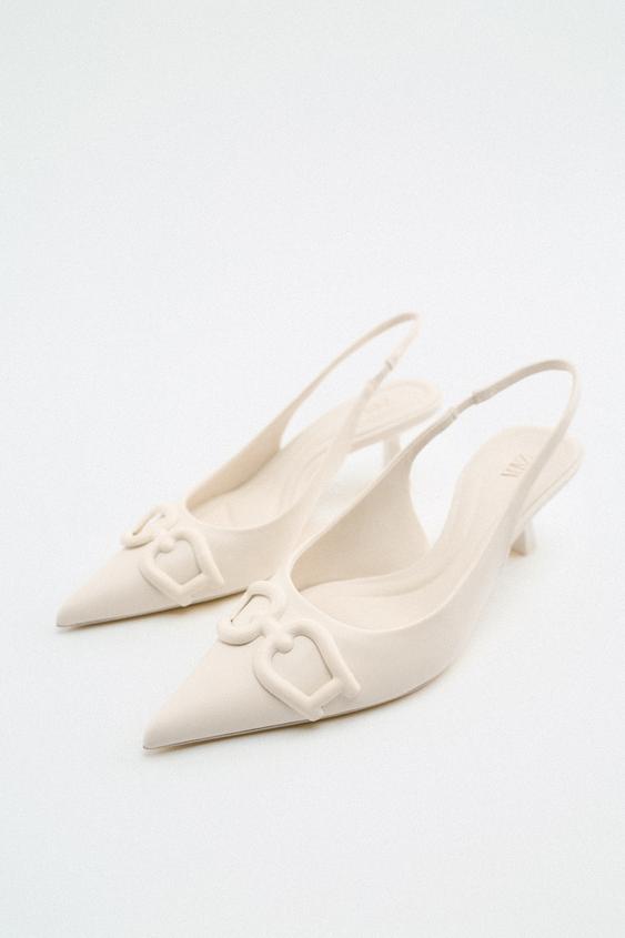 Otra opción si prefieres un zapato más formal y más alto, es este zapato de tacón en blanco crudo y destalonado con una altura de 8 centímetros.