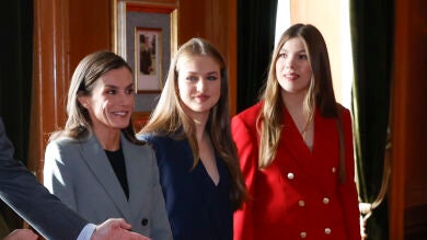 Gris, azul y rojo: Letizia, Leonor y Sofía con trajes de Mango, Boss y Tommy Hilfiger