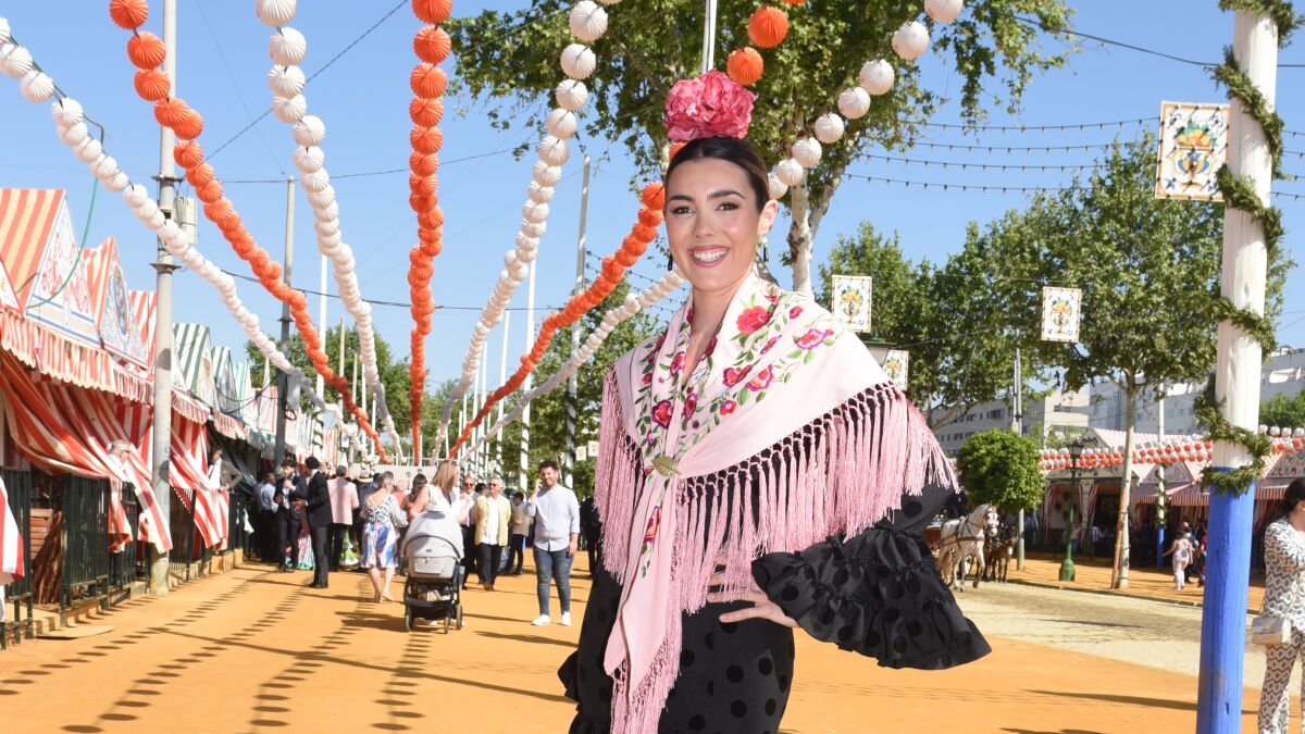 La presentadora de La Voz ha acudido a la Feria con un traje de flamenca del color estrella, el rojo. Un look clásico, pero sin pasar desapercibida. Su mantón es del mismo tono, con detalles dorados y flecos extravagantes.