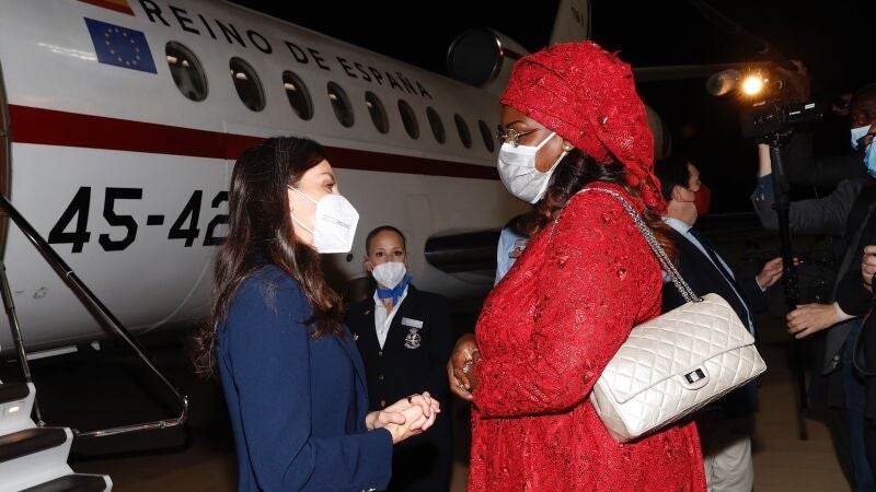 A las 21:40 horas de ayer, domingo 13 de diciembre, la reina Letizia aterrizaba en el aeropuerto Internacional de Blaise Diagne recibida por la primera dama Marie Faye Sall. En un contraste de colores azul y rojo entre ambas, la ex periodista comienza la semana en lo que parece ser su último viaje al extranjero de este año con un traje discreto y sencillo acorde para el evento cultural que le espera. La inauguración de un Instituto Cervantes supone la apertura del primer centro de la entidad en África subsahariana.