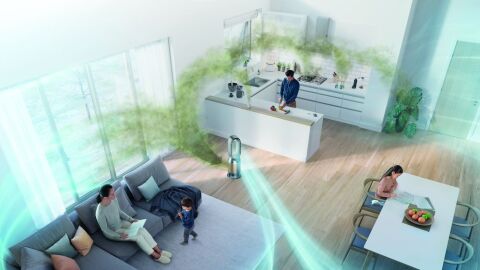 Una vez atrapadas las partículas nocivas, el purificador Dyson está equipado con tecnología Air Multiplier™ y una oscilación de 350º para distribuir el aire por toda la habitación. Además, podemos elegir entre un modo difusor que purifica sin refrescar, o un flujo de aire de largo alcance que refresca las habitaciones uniformemente en verano. Podemos controlar la calidad del aire y revisar todos estos datos en tiempo real gracias a la aplicación My Dyson.