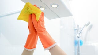Una vez transcurrido ese tiempo, solo tienes que rociar agua sobre toda la superficie para aclarar el almidón y entonces solo quedará retirar los restos con una bayeta para asegurarte de no dejar marcas.