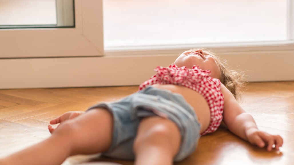 - Es importante tumbar al niño sobre el suelo en una zona segura o en algún lugar donde no pueda hacerse daño para evitar golpes con objetos o caídas. También se puede colocar bajo su cabeza y nuca alguna prenda a modo de almohada para evitar que se golpee contra el suelo.