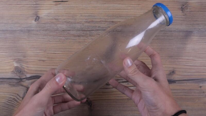 Para sacarlo, le damos la vuelta a la botella y la enganchamos con los dedos. Por último, enjuagamos un par de veces la botella con agua caliente para quitar los restos de jabón y la botella quedará como nueva.