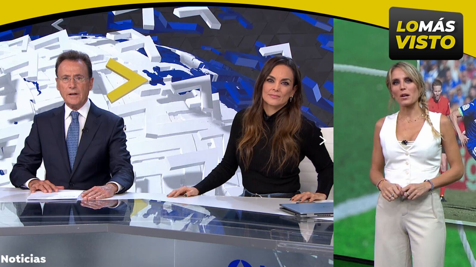 Antena 3 Noticias 1 Fin de Semana, con Matías Prats y Mónica Carrillo, es lo más visto del sábado. Lidera con 1.931.000 espectadores, un 19,3% de cuota y 3.170.000 espectadores únicos. La segunda edición también es líder como tercera emisión más vista y reúne a un 12,5% de cuota, 1.484.000 espectadores y 2.880.000 espectadores únicos, contribuyendo, un día más, a situar a Antena 3 como la cadena con los informativos más seguidos.