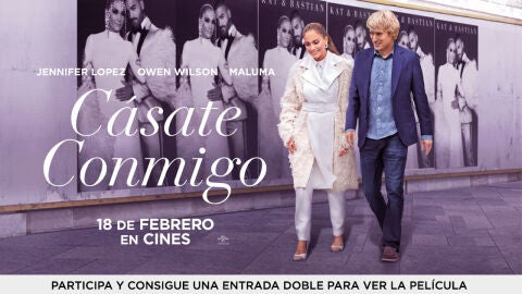 'Cásate Conmigo' la nueva película de Jennifer Lopez junto a Owen Wilson y Maluma llega a los cines el próximo 18 de febrer y desde Se Estrena te ofrecemos la posibilidad de hacerte con una entrada doble para ir a verla a través de este concurso.