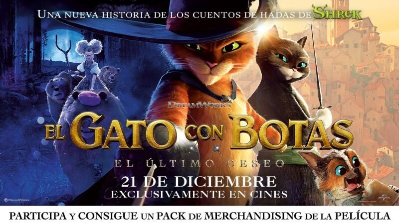 El 21 de diciembre regresa a las salas el felino espadachín más intrépido e icónico de la historia: El Gato con Botas, quien descubrirá que la pasión por el peligro y la indiferencia ante seguridad tienen un precio. Gato ya ha gastado ocho de sus nueve vidas y para recuperarlas tendrá que lanzarse a la mayor aventura que jamás ha vivido hasta ahora.