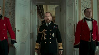 Y es que en la película dirigida por Matthew Vaughn que se estrena el próximo 29 de diciembre Tom Hollander encarna a tres personajes: El Rey de Inglaterra Jorge V, el Kaiser Guillermo II de Alemania y el Zar de Rusia Nicolás II. Así, puedes verlo caracterizado en la imagen del tráiler que encuentras sobre estas líneas.